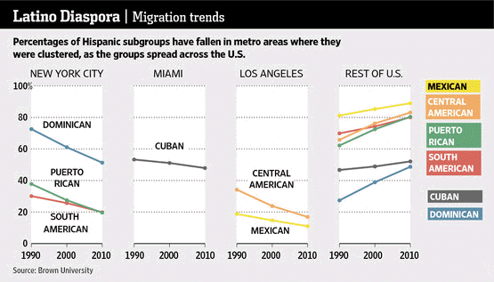 Instead, “some strong boundaries faced by smaller groups seem to be breaking down over time,” said Mr. Logan. His paper is part of Brown University’s U.S. 2010 Project, a demographic-research series based on analysis of census data about different Hispanic groups, including those who are immigrants and those born in the U.S.