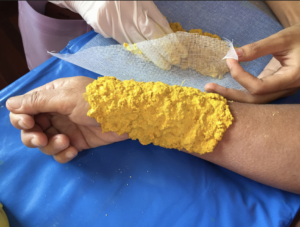 Poultices can be made from fresh or dried herbs and are often wrapped in cloth to keep them in place.